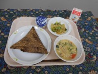☆献立りんごバタートースト牛乳オムレツカレー粉ふきいもミネストローネ