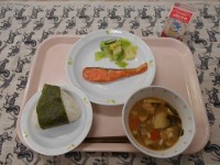 ☆献立おにぎり牛乳魚の塩焼きひと塩野菜じゃがいもと玉ねぎのみそ汁