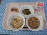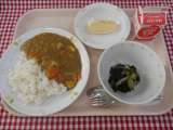 ☆献立 秋野菜カレーライス 青菜とわかめのレモンじょうゆ りんご 牛乳