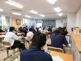 先ほどと同じ2年生の数学で問題を作る課題の授業です。組が違うだけで、雰囲気は一変...