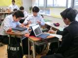 タブレットの画面を作成していた生徒は、途中まで1人黙々と取り組んでいましたが、途...