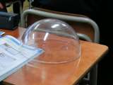 太陽の日周運動の調べ方について学んでいます。初めに透明なドーム状の模型を使ってこ...