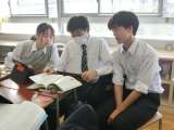 問題作成にあたり、様々なアプローチでチャレンジします。過去の学習ノートを見る生徒...