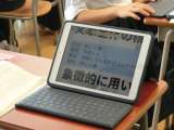 配られたプリントの画像データを、先生のタブレットから生徒のものに配信。画面を共有...