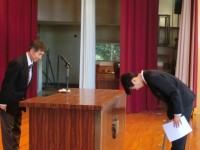 今日の生徒会朝会では、新年度の委員長の任命式も行われました。任命証を渡された後、...
