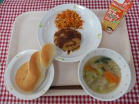 ☆献立ミルクパンみかんジュースポテトコロッケにんじんのシリシリベーコンと野菜のス...
