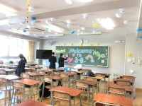 昨日の朝8時前に来ると、3年生がマウントテーバー中学校歓迎の飾りつけの最終段階に...