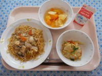 ☆献立五目焼きそば牛乳春野菜のおかかかけフルーツポンチ