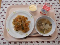 ☆献立パインパン牛乳ミートローフ五目スープ河内晩柑
