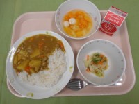 ☆献立チキンカレーライス牛乳アスパラガスのサラダフルーツ白玉
