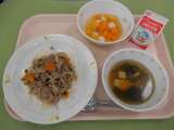 ☆献立 梅じゃこごはん 牛乳 肉じゃがうま煮 ちくわ入りおひたし