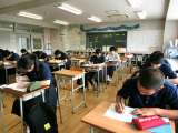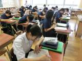 3年生も2クラスを3つに分け、数学の授業を進めています。どのクラスも3年生らしく...