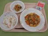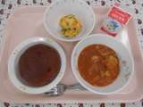 ☆献立 チョコチップパン 牛乳 トマトシチュー かぼちゃサラダ