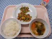 ☆献立有機米ごはん牛乳チキンチキンごぼうごまあえ豆腐とわかめのみそ汁