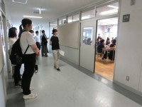 5時間目は巴の学び舎の日。授業見学に来ている学び舎の小学校や保育園の先生が廊下に...