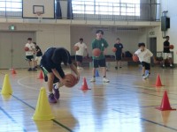 今日は体育館でバスケットボール部生徒の活躍をカメラにおさめました。床に車座で座り...