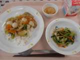 ☆献立 中華丼 野菜の中華味 きな粉の月見団子 牛乳