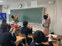 1年生の日本語の授業は「風呂敷」です。講師の方々が丁寧に指導してくださりました。...