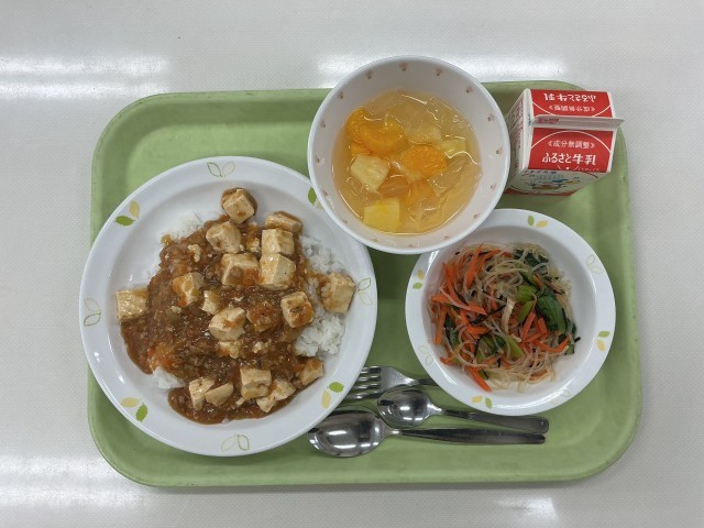 今日の献立🍊🍫・ココア揚げパン・ベーコンポテト・ポークビーンズ・オレンジ給食の人気メニュー、ココア揚げパンです。2年生のリクエスト給食でした!ココアがたっぷりで嬉しいですね。お口の周りにつけないように...