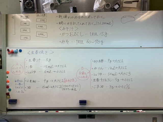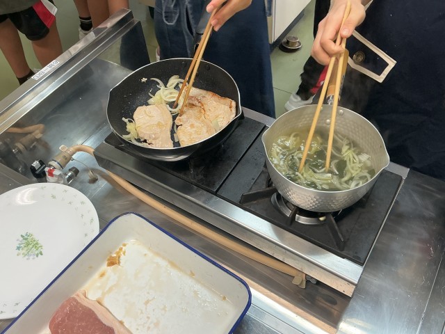 第1学年では、今週家庭科の授業で「豚肉の生姜焼き」と「味噌汁」の調理実習を行っています。