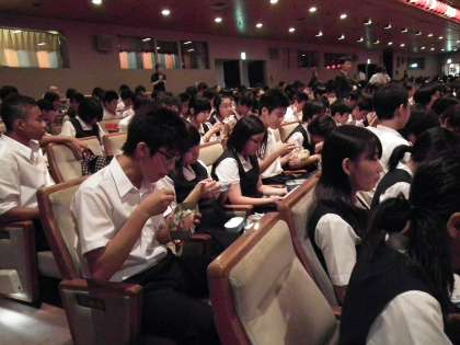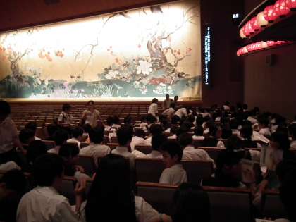 7月11日(木) 3年生の歌舞伎鑑賞教室がありました。会場の国立劇場まで、経堂駅から班ごとに向かいました。今日の演目は、芦屋道満大内鑑、安倍晴明の誕生秘話でした。幕間に、お弁当を食べました。