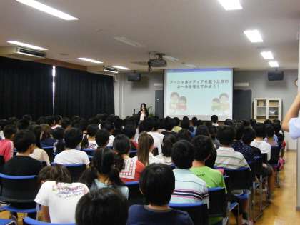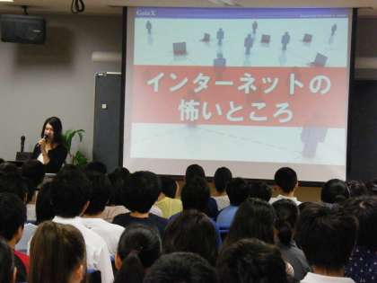 9月14日(土) 一年生は、1、2時間目に多目的室に集まり、メディアリテラシーの講演会を聞きました。便利なインターネットの、怖さや、危険からの回避法を学びました。