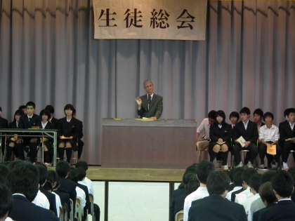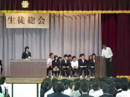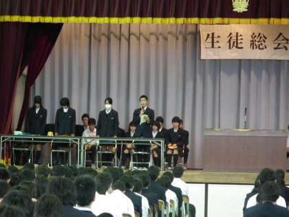 10月24日(木) 後期生徒総会。議案書を基に後期の生徒総会が開催されました。校長先生からのお話は、「自由とはどういう事か。いろいろな思い込みや偏見から自己を解放することが大切だ。」という内容でした。本当の意味で自由になってほしい、ということです。