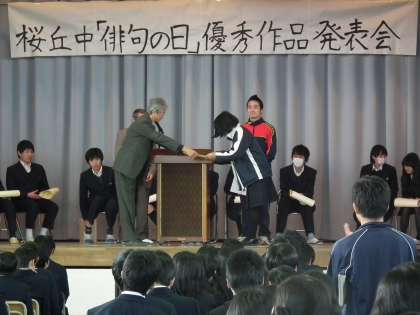 3月12日(水) 一年に一度、各々の最高の俳句を競い、地域の俳人の皆様に選句をしていただきます。今年は、先生も表彰されました。