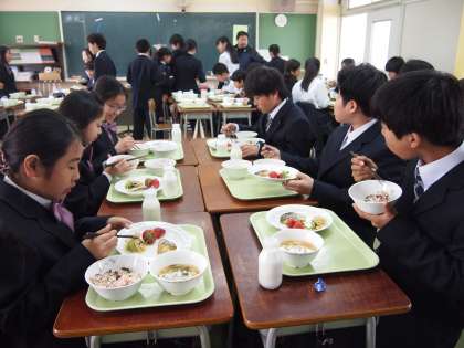 次は待ちに待った給食です。中学校の給食も「おいしい」と評判でした。