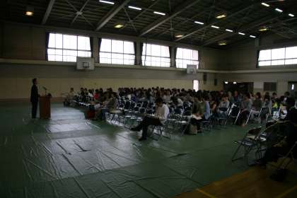 全体会で、各部活の顧問が紹介された後、各部に分かれて保護者の代表や年間の活動予定などが話されました。