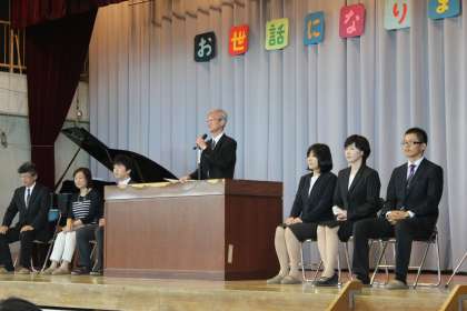 5月1日(金) 昨年度まで、本校に勤務されていた教職員の方々をお迎えして離任式が開かれました。赴任した新しい学校の話、桜丘中学校の良かったところ、在校生に伝えたかったことなどお話していただきました。ぜひ、新しい学校でも活躍をしていただきたいと思います。
