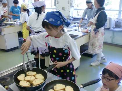 5月13日(水)今年度、第1回目の「放課後の料理教室」が始まりました。毎月1回、水曜日か土曜日の放課後に希望生徒対象の料理教室が開かれます。水曜日は、3時のおやつにスイーツ系、土曜日はお昼ごはんになるメニューを作ります。