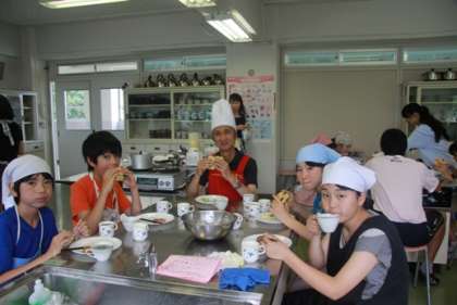 6月13日(土) 授業が終わった12時過ぎから、1学年から3学年の生徒18名が参加して「放課後の料理教室」が行われました。この料理教室は毎月水曜日と授業のある土曜日に交互に開かれ、水曜日はスイーツ系のおやつ、土曜日はお昼ごはんになるものをメニューにしています。