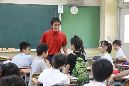 教室では、お兄ちゃんの担任の川島先生にも会えました。中学生も小学生を見て「かわいい!」の連続。たのしいひとときを過ごしました。