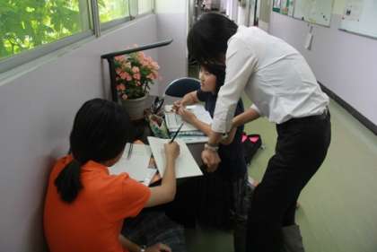 6月25日(木)期末試験の中日。テストが終わると、職員室前は、大勢の生徒で原宿の竹下通りのようになります。明日の試験科目の質問や、提出物の確認、中には単に先生と話したいだけで集まる生徒もいます。