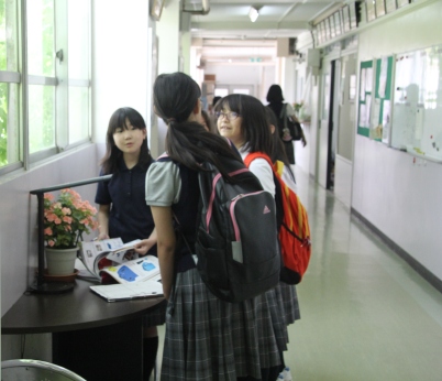 職員室前にある半円形のテーブルがあるのをご存じでしょうか。俗に「ヘルプデスク」と言われています。ここで、生徒は自習ができます。何で、職員室前の廊下で勉強するのかというと、分からないところがあると、すぐに職員室の先生に質問ができるからです。質問をしなくても、通りかかった先生が勉強を教えてくれることもあります。