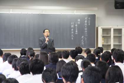 7月9日(木)性教育で有名な、村瀬幸浩先生をお迎えして、3年生対象に「思春期の悩みについて考える」という題で、講演をしていただきました。村瀬先生は、東京教育大学を卒業後、和光高等学校の教諭を 1989年3月まで、29 年間勤められました。退職後、一橋大学、津田塾大学、東京女子大学で非常勤講師をおつとめになり、ジェンダーフリー、性の自己決定権や女性学、男性学といったテーマで活動していらっしゃる超有名な先生です。
