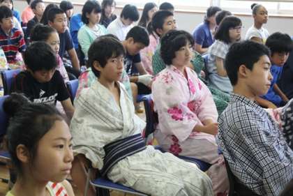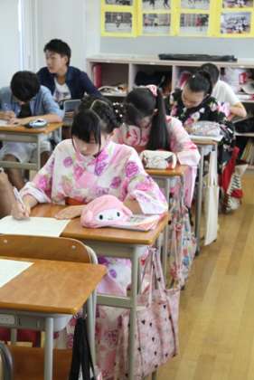 7月11日(土)今日は、生徒会主催の「浴衣の日」です。そもそも本校の土曜日は、「カジュアル・スタイル・デイ」、私服で登校ができる日です。夏休み前の7月は、「浴衣で授業をうけてみよう」と、学校協議会の方やボランティアの方が、朝7時半から浴衣の着付けをしてくれます。