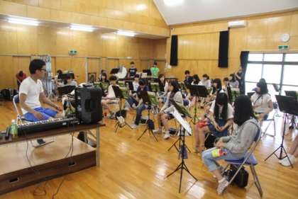 7月26日(日)〜28日(火)吹奏楽部が恒例の夏合宿へ行ってきました。気温が34度以上にもなる東京を離れ、涼しい河口湖の湖畔の「音楽民宿」での3日間の合宿。おいしい宿のごはんをたくさん食べ、思い切り3日間練習をしてきました。