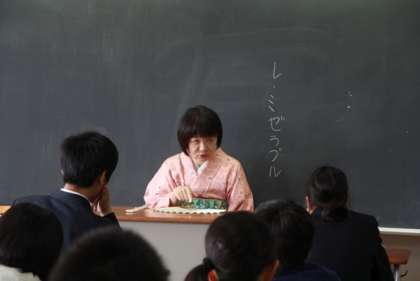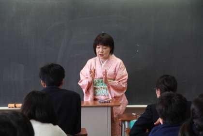 11月26日(木)2学年の国語の授業に「講談師」の神門久子(かんど ひさこ)さんをお招きして、講談を聞きました。毎年、桜丘中で講談をしていただいている神門さんは、2003年より、神田愛山に師事。小学校、ライブハウス、高齢者施設、都内、地方各地で講談公演活動を行っています。今日の演目は「レ・ミゼラブル」と「応挙の幽霊」。どちらも有名な話ですが、講談で聞くと本で読むのとはまた違った趣があり、大変楽しめました。