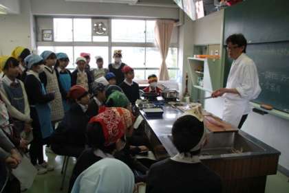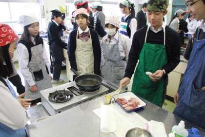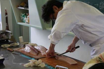 2月23日(火)今日の1年生の家庭科の時間は、「ブリの解体ショー」でした。特別講師にさくら学級の海沼先生に、ブリをおろしていただきました。海沼先生は元寿司屋の板前さん、見事な包丁さばきで見る間に一匹1万円の大きなブリがおいしい切り身になっていきます。包丁も自前の出刃包丁と柳刃包丁を使い分け、素人にはちょっと難しい油のたっぷりとのったブリを難なく解体。切り身は、照り焼きにしておいしくいただきました。(本当はお刺身で食べるとおいしいのですが)