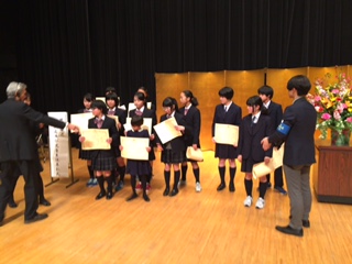 3月1日(火)今年も世田谷区教育委員会が、有益な研究や発明をした生徒、学業・操行に優れたり、善行で他の模範となった生徒を表彰する式がありました。本校からも、スポーツ分野、文化活動で優れた成績を残した生徒が九人選ばれ、表彰されました。