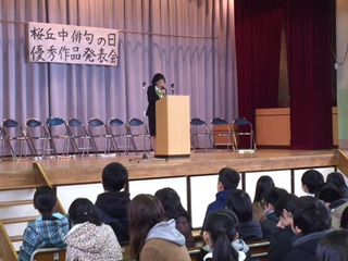 3月12日(土)桜丘中学校の特色の一つに「俳句学習」があります。俳句を詠むことを通じて、日頃見逃してしまうような僅かな心の動きや気持ちの変化に気がつき、表現することで、激動の思春期を乗り越える力を付けようとする活動です。
