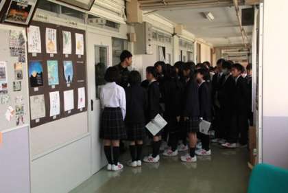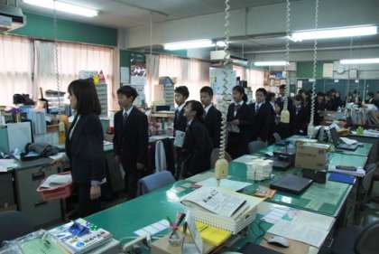 1年生は、学校内の特別教室や施設の説明を受けました。校長室や職員室も見学しましたが、乱雑な机上など生徒に見つかってしまいました(^_^;)