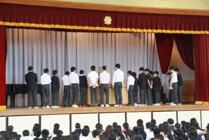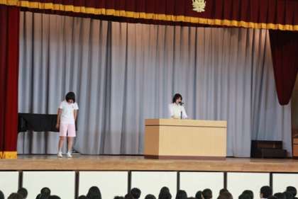 その後で、生徒会から「スーパークールビズ」の説明やバスケット部・陸上部の表彰がありました。