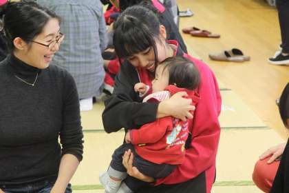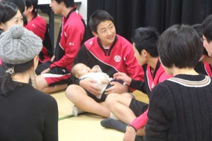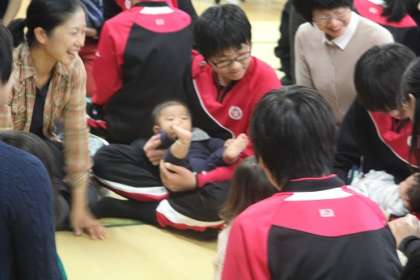 11月24日(木)3学年の家庭科の授業で、近隣の乳幼児を育てていらっしゃるお母様に赤ちゃんと一緒に来校していただき、「赤ちゃんとのふれあい体験」を行いました。赤ちゃんを抱いたことがない生徒は恐る恐る大切に抱いていました。