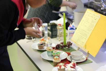 12月7日(水)今日は、今年最後の料理教室でした。焼きあがったカップケーキには好きなトッピングを施しました。Xmasに因んで、カップケーキを作りました。校長先生からは、紅茶の入れ方を教わりました。ダージリンにカルダモンなどの隠し味を入れた紅茶はミルクティーにすると大変おいしいです。