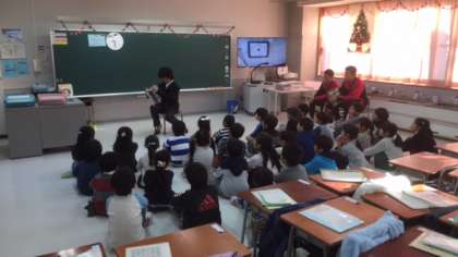12月20日(火)桜丘小学校の一年生に、図書委員会のメンバーが読み聞かせに行きました。