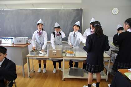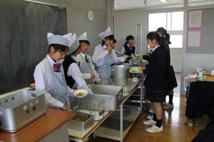 配膳も上手にできました。おいしい給食を食べながら楽しく時間が過ごせました。