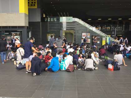 9月28日(木) 帰りの新幹線。生徒たちは、全く疲れを感じていないようです。それにひきかえ、先生たちは爆睡中^_^ お疲れ様でした。